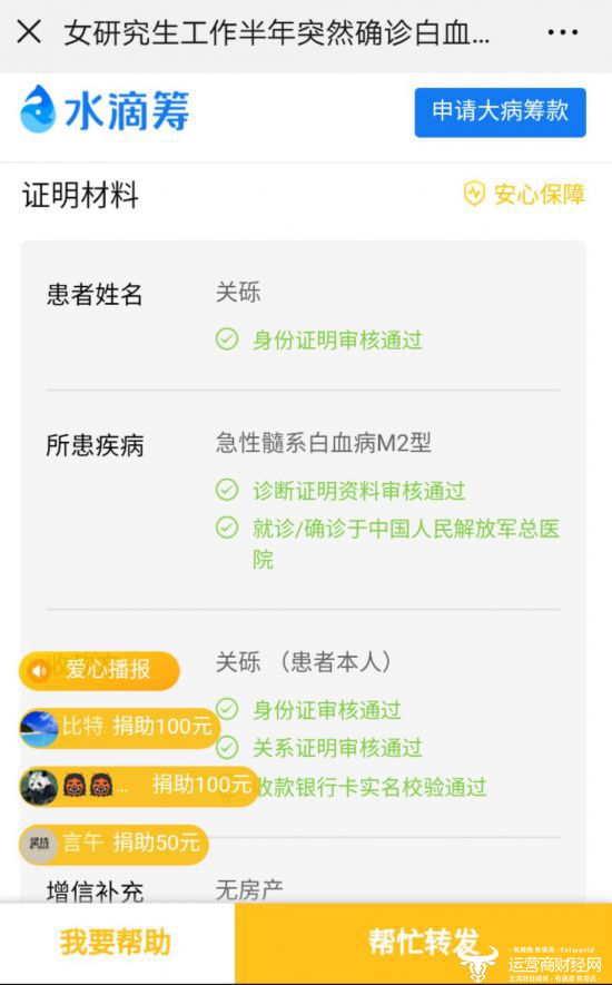 以下为水滴筹链接: 点击水滴筹捐款链接
