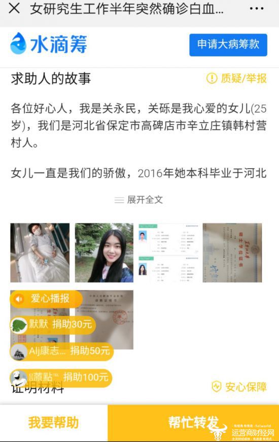 “挽救这个家!女研究生工作半年突然确诊白血病家境普通望好心人援助”,16日一早,便有人在朋友圈分享这则众筹链接,短短一天的时间,这个消息便得到了上万次转发。