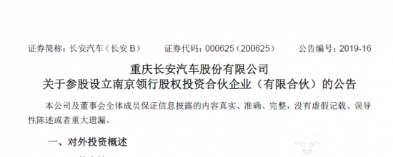 2019年3月22日,重庆长安汽车股份有限公司(以下简称“长安汽车”)发布关于参股设立南京领行股权投资合伙企业(有限合伙)的公告。