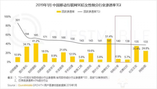 2019年3月26日,移动大数据平台QuestMobile发布了最新“她经济”洞察报告。报告显示,截至2019年1月,中国移动互联网女性用户规模增速超全网,总体规模达到5.31亿,占全网46.9%。而从消费价值看,女性仍然占据互联网消费主体地位,购物欲望强烈,综合电商渗透率持续上升。