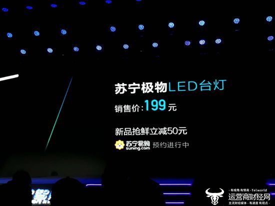 苏宁极物LED台灯,是一款三轴可调的多角度补光护眼灯,无可视频闪,拥有三种色温模式,定价199元,新品抢鲜立减50元。据常江介绍,这两款台灯截止发布会前预约量将近1万台。