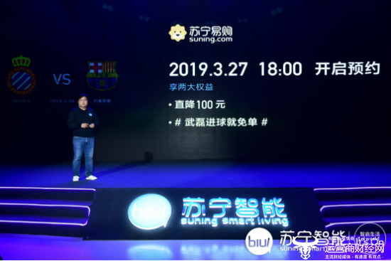 3月27日发布会当天18点起,即可在苏宁易购参与0元预约小Biu智能耳机加泰罗尼亚蓝色款,如果武磊在比赛中进球,预约用户就有机会享受耳机免单。值得注意的是,预约时间截止到3月31日01:00, 4月1日10:00-12:00抢购10000台免单名额。