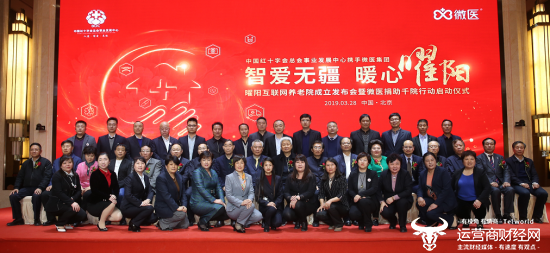 3月28日,中国红十字会总会事业发展中心与微医集团在京共同举办“曜阳互联网养老院成立发布会暨微医捐助千院行动”启动仪式。江西省原省委书记舒惠国,第十二届全国政协委员,人民日报社原副总编辑陈俊宏,原农业部党组成员、中央纪委驻农业部纪检组组长朱保成,第十三届全国政协委员、原中央党校副校长黄宪起,中国红十字会党组成员、副会长尹德明等出席活动。