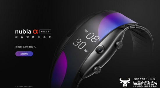 据了解,根据此前网上曝光的产品信息,努比亚α将搭载960×192像素的4.01英寸柔性可弯折显示屏,你可以将其佩戴在手腕上进行操作。