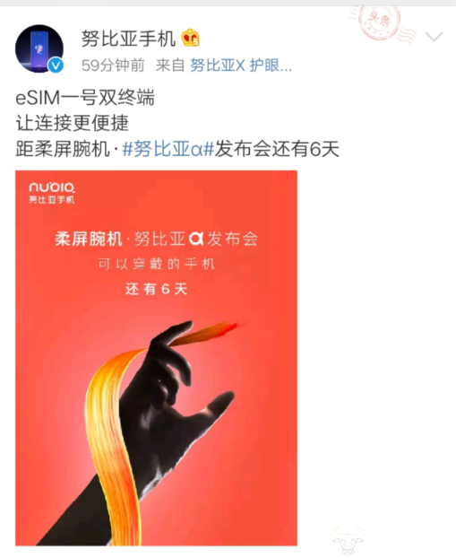 距离“柔屏腕机 努比亚阿尔法”发布会倒计时还有6天,据刚刚努比亚微博显示,此次努比亚阿尔法将搭载eSIM卡,实现“eSIM一号双终端 让连接更便捷”。此前这款产品在巴塞罗那展上引起不少国内外媒体行业人士的关注,如今也终于在国内揭开其神秘面纱了!