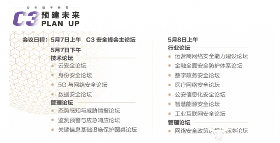 本届C3安全峰会上,来自信息安全产业的领袖们,不仅会全面介绍5G产业互联网安全趋势,更会通过专场论坛的形式,深入分析5G移动终端安全、物联网安全、工控安全、IoT、智能家居,让我们全面了解5G网络所建立的全新业务场景、全新的信任模型,展示5G端到端的威胁治理全貌,面向未来,共赏5G之美。
