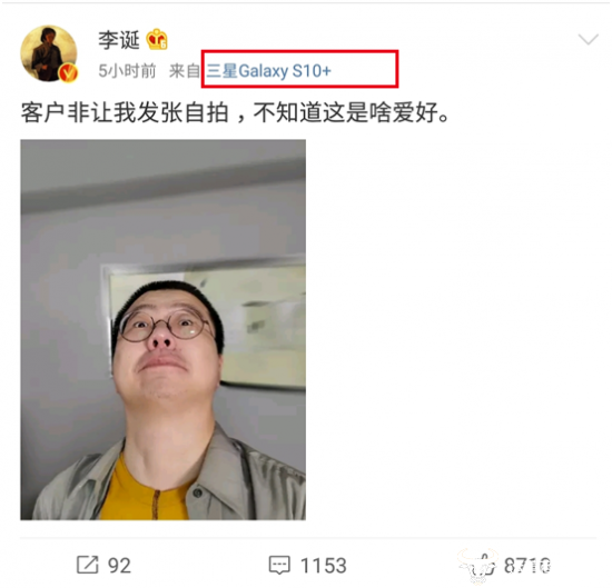 近日,有细心的网友发现,搜狐CEO张朝阳、火爆的脱口秀演员李诞、著名主持人张绍刚等众多明星、大V们的微博小尾巴都变成了三星Galaxy S10系列。看来,三星Galaxy S10系列的魅力已经挡不住,开始蔓延到娱乐圈了!