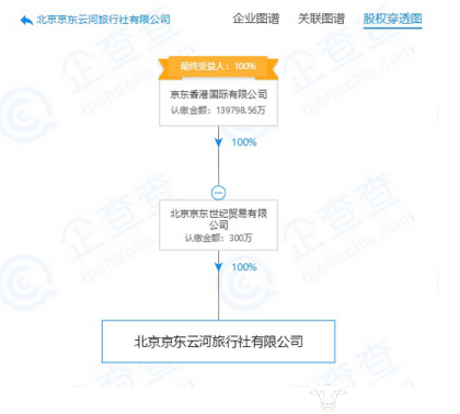 据悉,北京京东世纪贸易有限公司于4月8日新成立一家北京京东云河旅行社有限公司。