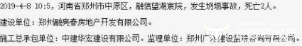 近日,经住建部发布事故快报称,4月8日上午10时5分郑州市中原区融信望湖宸院,发生坍塌事故导致2人死亡。