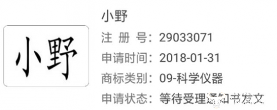 根据天眼查提供的工商信息显示,锤子科技曾于 2018 年 1 月申请了“小野”的商标,商标类别为“09-科学仪器”,但申请状态目前仍为“等待通知书发文”。当然,结合此前锤子科技可能已被收购的消息来看,罗永浩很可能为新品牌重新注册了公司。