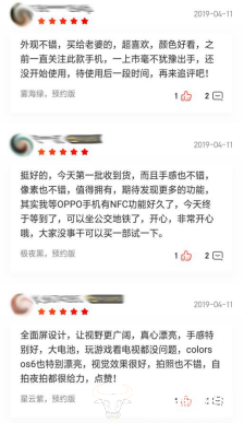 针对线上渠道,4月10日16:30-17:30,OPPO在官网及京东、天猫、苏宁三大电商平台上开启了Reno新品体验官活动,首次限量开售OPPO Reno,受到消费者的广泛追捧。从各大电商平台的用户评价来看,用户对于Reno普遍保有较好的初次印象,“颜色漂亮”、“手感舒服”等词在评论中频繁出现,部分用户表示,这是一款“十分惊艳的全面屏手机”。而错过本次抢先购活动的用户,也可以在4月10日18:00后在OPPO官网、京东、天猫、苏宁及全国线下门店进行预约购买。