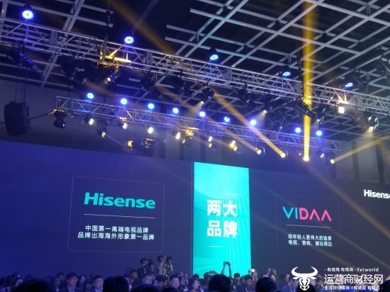 4月15日,2019海信电视春品大秀在北京举行,青岛海信电器营销股份有限公司总经理王伟表示,2019年海信将以一个引擎(U+超画质),三驾马车(激光电视、ULEDTV、OLEDTV),共同打造Hisence和Vidaa两大品牌。