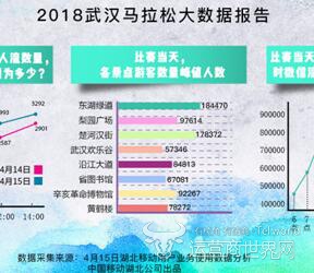 4月15日,中国移动湖北公司发布《2019汉马大数据报告》。报告显示,2019年武汉马拉松期间,人气最旺的观赛地为全马终点武汉欢乐谷,最高峰时有近5万人在终点守候目睹冲刺之美;90后参与汉马的人数最多,占33%;汉马当天6时-14时,武汉城市轨道交通线网客运量(含换乘)约为223.5万乘次。