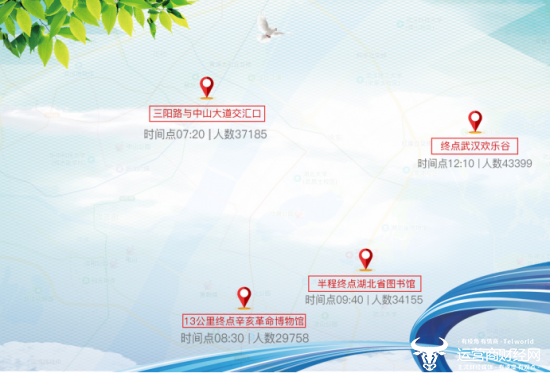 近年来,汉马赛事通信保障在大数据指引下更为精准。“我们此次重点保障的区域与大数据发现的人气最旺赛段基本是一致的。”大数据显示,观众最火加油观赛路段为全马终点武汉欢乐谷,除了欢乐谷,还有起点三阳路、13公里跑终点辛亥革命博物馆、半程马拉松终点湖北省图书馆,超过10万人在这三处观赛喝彩。“上述赛段均是我们通信保障队伍重点‘保护’的区域。”湖北移动相关技术人员介绍。