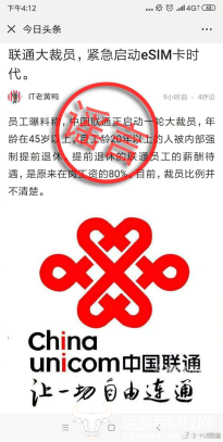 近日,有消息称中国联通正启动一轮大裁员。而中国联通正式回应:假的!