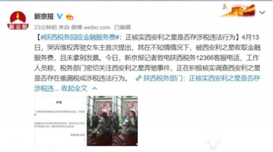 税务部门表示,正在密切关注西安利之星奔驰事件,同时积极核实调查西安利之星是否存在偷漏税或涉税违法行为。