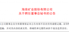 今日,海南矿业股份有限公司发布了关于董事会秘书辞职的公告。
