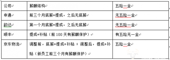 以北京地区为例,通达系(以申通、韵达为例)、顺丰、京东物流的薪酬模式分别如下: