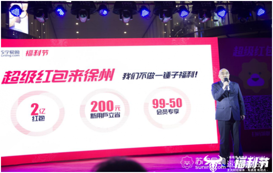此外,苏宁力推普惠徐州用户福利,发放2亿更好用的超级红包“砸晕”徐州人。