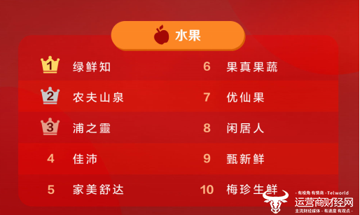 除了消费场景越来越多,电商平台对于品质的精细化把控也成为其备受消费者青睐的关键原因。在水果品牌销量排行榜中,霸占榜单前4位的绿鲜知、农夫山泉、浦之灵、佳沛均是知名果蔬名牌,以高品质赢得了消费者的高度认同。位列销量榜首的绿鲜知是京东与东昇集团战略合作的自营品牌,京东7FRESH深入到东昇蔬菜的各个环节,实现了对蔬菜品质的精准把控。农夫山泉推出的17°5系列水果,因对种植区域、种植技术的严苛要求与管理,保证了果实的优质口感,帮助品牌登上销售额榜榜首,销量榜亚军。在品牌销量增速排行榜中,小汤山位列水果品类TOP4。小汤山蔬菜是京选推荐的“无公害”产品,其销量的飞速增长反映了消费者对于食品安全的关注。