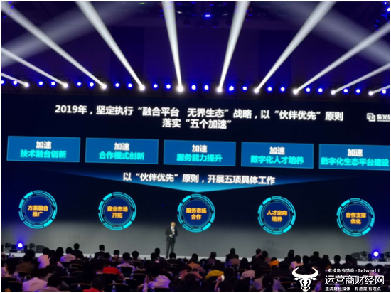 “五个加速“分别是技术融合创新,合作模式创新,服务能力提升,数字化人才培养,数字化生态平台建设。2019年新华三将会以“伙伴优先”原则,开展五项具体工作:与合作伙伴推广方案融合,开拓商业市场,继续服务市场的合作、培养人才定向、优化合作支撑。