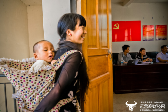 ▲“多多农园”团队向丛岗村村委会、商家、农户公布未来三年的计划,一位年轻妈妈站在门外旁听。