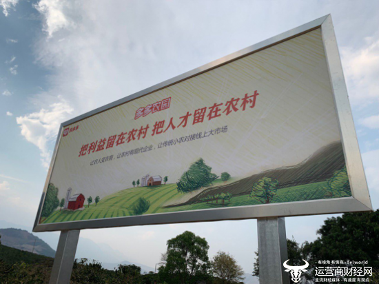 3月底,胡老德所属的丛岗村村道旁,竖立起了“多多农园”的标识,上面写着:让农人变农商,让农村有现代企业,让传统小农对接线上大市场。