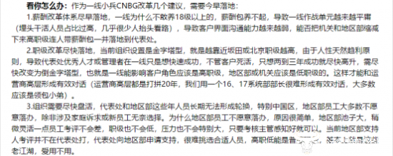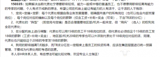 在一片赞成或担忧声中,也有部分员工结合实际给出了自己关于改革的建议。希望此次改革能够在薪酬和职级方面尽快落实;也希望每个代表处能够根据自身业务发展需要,明确面向用户的所有岗位,同时做到定岗、定编以及定薪。