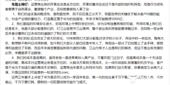 而对于此次改革,华为的内部员工也是议论纷纷。有人表示在目前的市场大环境下,作为领先者要勇于自我革命,否则就要被别人革了命;也有人对这场改革表示担忧,希望这次改革不只是冷冰冰的XX%降级、XX%末位。