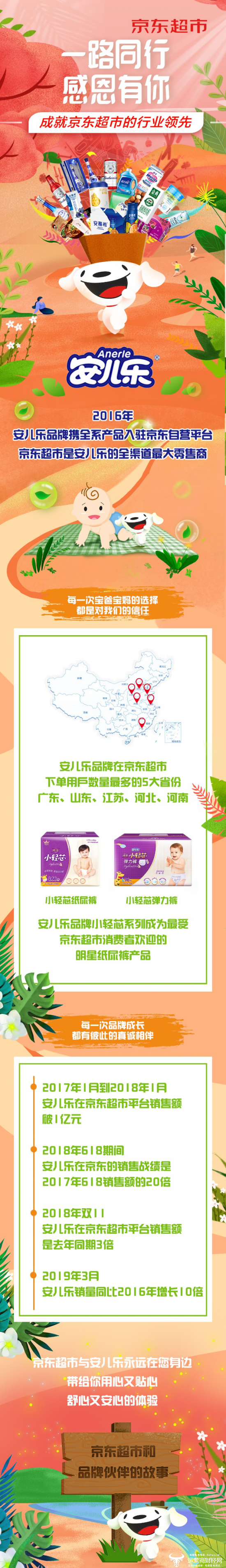 京东超市是安儿乐的全渠道最大零售商,通过物流、大数据、营销等多方面的合作,京东帮助安儿乐品牌实现了销量的高速增长。
