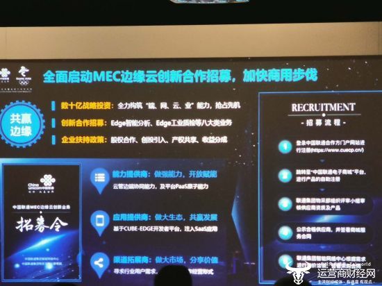 马红兵表示,中国联通将全面启动MEC边缘云创新合作招募令,欢迎各大企业的加入。