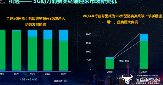 张云勇称,全球5G智能手机出货量将在2020进入培育发展阶段,在用户体验需求升级基础上,更推动了产品形态多样化发展;而5G与垂直行业的协同发展,促进行业终端类型及需求量激增。张云勇表示,VR/AR行业有望成为5G新型消费类终端“杀手级应用”,蕴藏巨大商机。