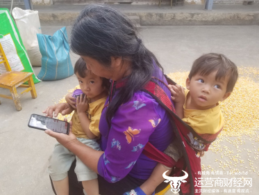 ▲2019年4月15日,云南保山海拔1500米的贫困地区,一位照料孩子的阿姨正在使用拼多多APP购物。 吴俊松摄