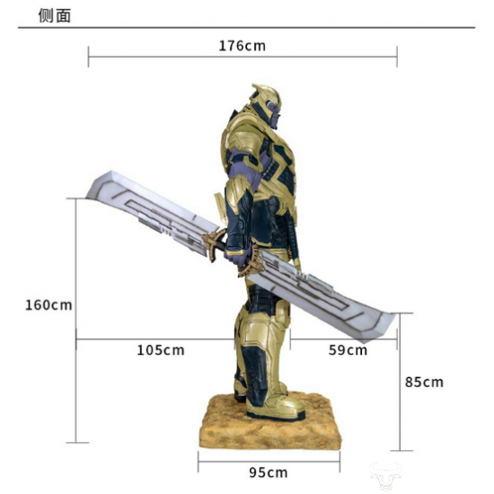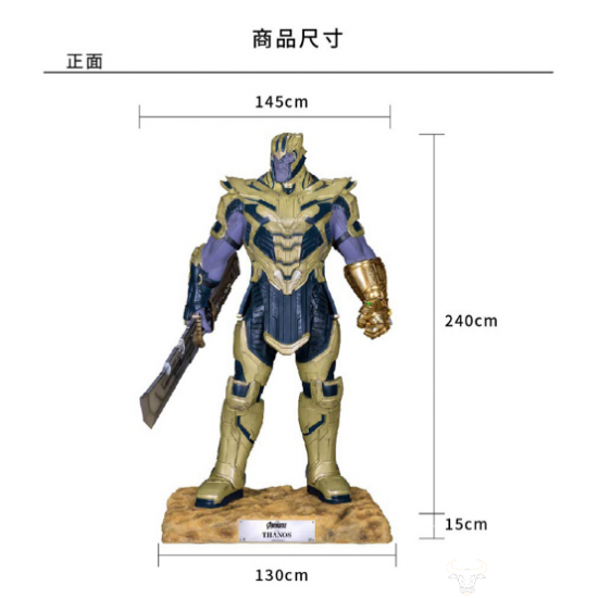 野兽王国此次为了打造这一传奇的反派角色,将整尊灭霸雕像做足240公分高,并设定穿戴金色厚重战甲,左手带无限手套,右手持长柄双刃刀,让雕像霸气十足。同时运用积累多年的1:1雕像制作经验及计算机绘图技术,将所有灭霸的盔甲与武器的细节精细刻画出来,再搭配细腻的上色及身经百战的访旧效果,绝对可以让人感受到这位传奇反派的魄力与魅力。战甲的细致纹路,重现其身为终极反派的霸气,此拍品为特别编号088,起拍价也高达¥108,450。