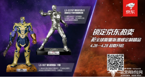 京东作为《复仇者联盟4:终局之战》电影推广官方合作伙伴,将于4月26日的“京东超级IP日”携手清扬、亿滋、好时、欧莱雅男士等多个品牌,开展IP联合营销,为广大超级英雄粉丝打造多款“复联4”特色周边产品。值得一提的是,4月26日0:00-28日22:00,漫威宇宙全球限量版的两款顶级藏品,将通过京东拍卖平台进行拍卖。