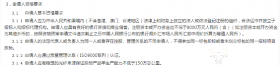 公告指出,申请人应有稳定的光纤来源保证投标产品年生产能力不低于150万芯公里。投标产品应是成熟稳定的产品且应覆盖本次招标所有规格型号,其中主要规格型号产品(GYTA、GYTS和GYTA53)应通过泰尔产品认证(TLC认证)。