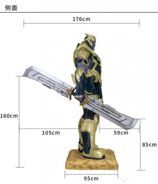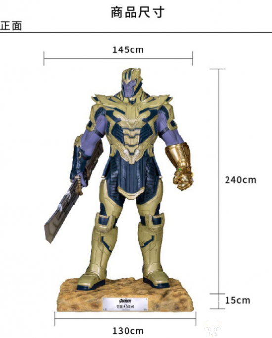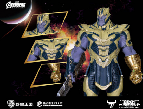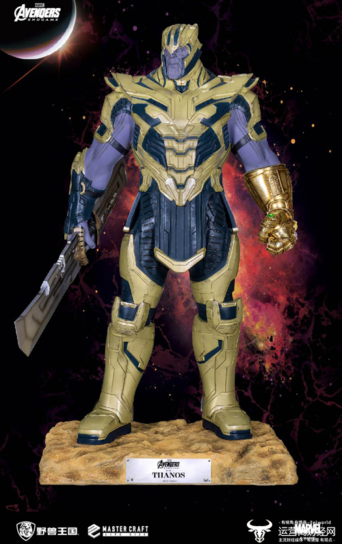 野兽王国此次为了打造这一传奇的反派角色,将整尊灭霸雕像做足240公分高,并设定穿戴金色厚重战甲,左手带无限手套,右手持长柄双刃刀,让雕像霸气十足。同时运用积累多年的1:1雕像制作经验及计算机绘图技术,将所有灭霸的盔甲与武器的细节精细刻画出来,再搭配细腻的上色及身经百战的访旧效果,绝对可以让人感受到这位传奇反派的魄力与魅力。战甲的细致纹路,重现其身为终极反派的霸气,此拍品为特别编号088,起拍价也高达¥108,450。