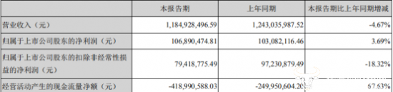 据报告显示,报告期内该公司实现营业收入11.95亿元,上年同期12.43亿元,同比减少4.67%;实现归属于上市公司股东的净利润10.79亿元,上年同期1.03亿元,同比增加3.69%。