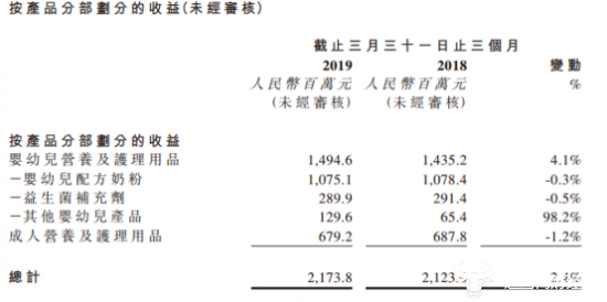 其中,婴幼儿配方奶粉产品实现营收10.75亿元,同比下滑0.3%;益生菌补充剂营收2.9亿元,同比下滑0.5%;其他婴幼儿产品营收1.3亿元,同比增长98.2%。