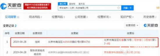 根据天眼查相关数据显示,日前,京东城市(北京)科技有限公司住所地发生变更。公司新住所为北京翠宫饭店旧址——北京市海淀区知春路76号(写字楼) 1号楼9层。