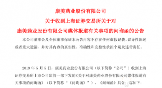 上交所要求,康美药业于2019年5月14日之前披露对问询函的回复,康美药业表示将尽快组织相关人员就《问询函》进行回复并履行信息披露义务。