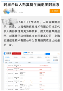 5月6日消息,针对“阿里合伙人彭翼捷全面退出阿里系”的传言,支付宝在官方微博声明称,“彭翼捷是蚂蚁金服在职员工,并担任首席市场官。辟谣这样的‘新闻’已经不是第一次了,工商信息变更是公司治理的正常行为,正确理解这个信息前起码需要征询一下公司的说法,如果缺失这样的环节,就得出这样的结论,便只是浪费社会公共资源多了更多的制造谣言与辟谣而已。”