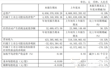 从报告中可以看出,在2019年第一季度,圣济堂营业收入约为4.23亿元,与去年同期相比同比下降18.32%;而归属上市公司股东的净利润同比下降率高达172.51%,整体亏损约0.32亿元。