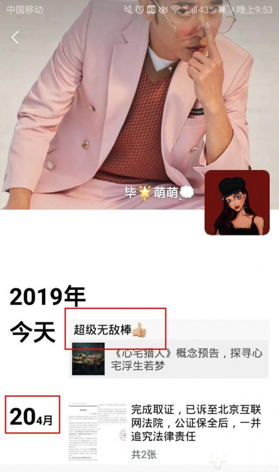 不过随后网上曝光了疑似毕滢的朋友圈,从截图中可以看出,她的昵称改为了“毕萌萌”,不过背景图依旧是张丹峰的写真照,不知是没来得及更换还是另有原因。