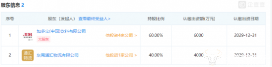 日前,据企查查数据显示,成立于5月6日的北京大运通泰物流有限公司最大股东为加多宝(中国)饮料有限公司,持股比例为60%。