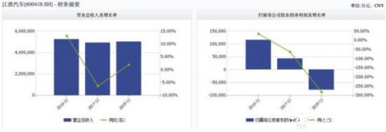 其所披露的2018年年度报告和2019年第一季度报告均显示,归属于上市公司股东的净利润呈现下滑。其中,2018年江淮汽车归属于上市公司股东的净利润约亏损7.86亿元,同比下降282.02%,成为江淮汽车登陆资本市场以来的首次负增长。