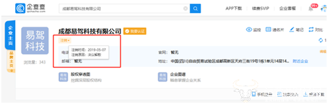 今日上午消息,企查查数据显示,5月7日,乐视汽车旗下成都易驾科技有限公司显示为注销状态,注销原因为“决议解散”。