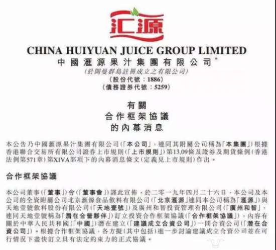 截至目前,汇源果汁与天地壹号、广州和智的交易尚未最终达成,合资公司的名字也未向外公布。
