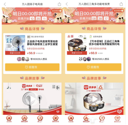 ▲拼多多提前24小时披露限量定制化产品,数十万级用户“预约”抢购