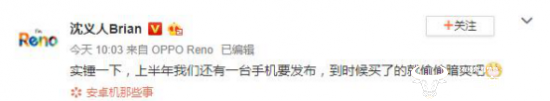 日前,OPPO手机副总裁沈义人发布了一条微博,暗示着上半年OPPO还有一台手机发布,并称“买到了就该偷偷暗爽。”
